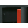 Cette armoire peut être fixée au mur et au sol grâce à ses quatre points de fixation (2 arrière + 2 base). Sa peinture époxy cuite au four protège durablement la surface contre la corrosion et l’usure.
