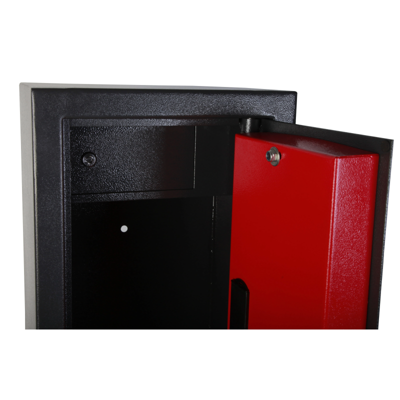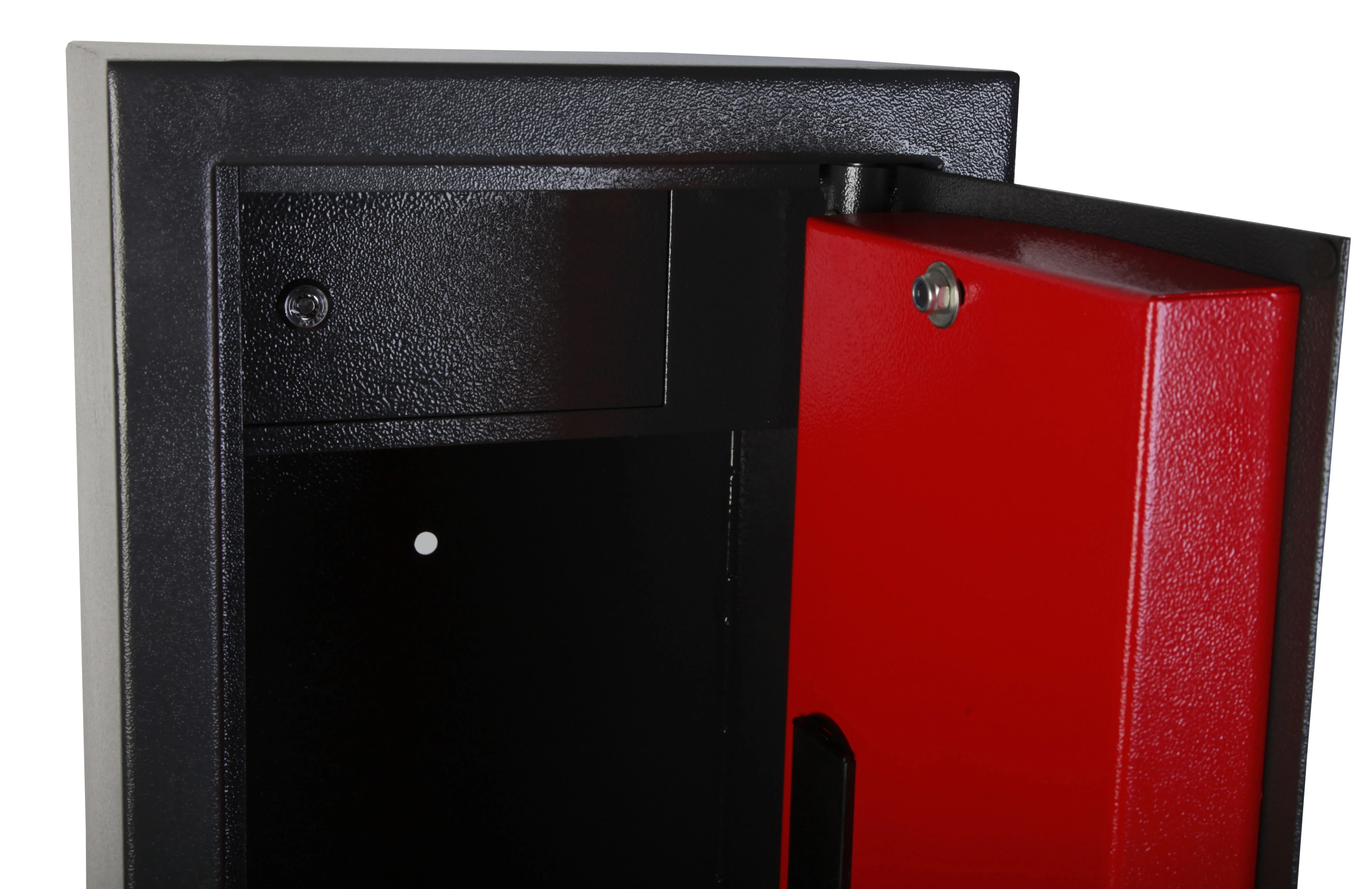 - Structure acier 2 mm, porte renforcée 55 mm et coffret munitions à clé