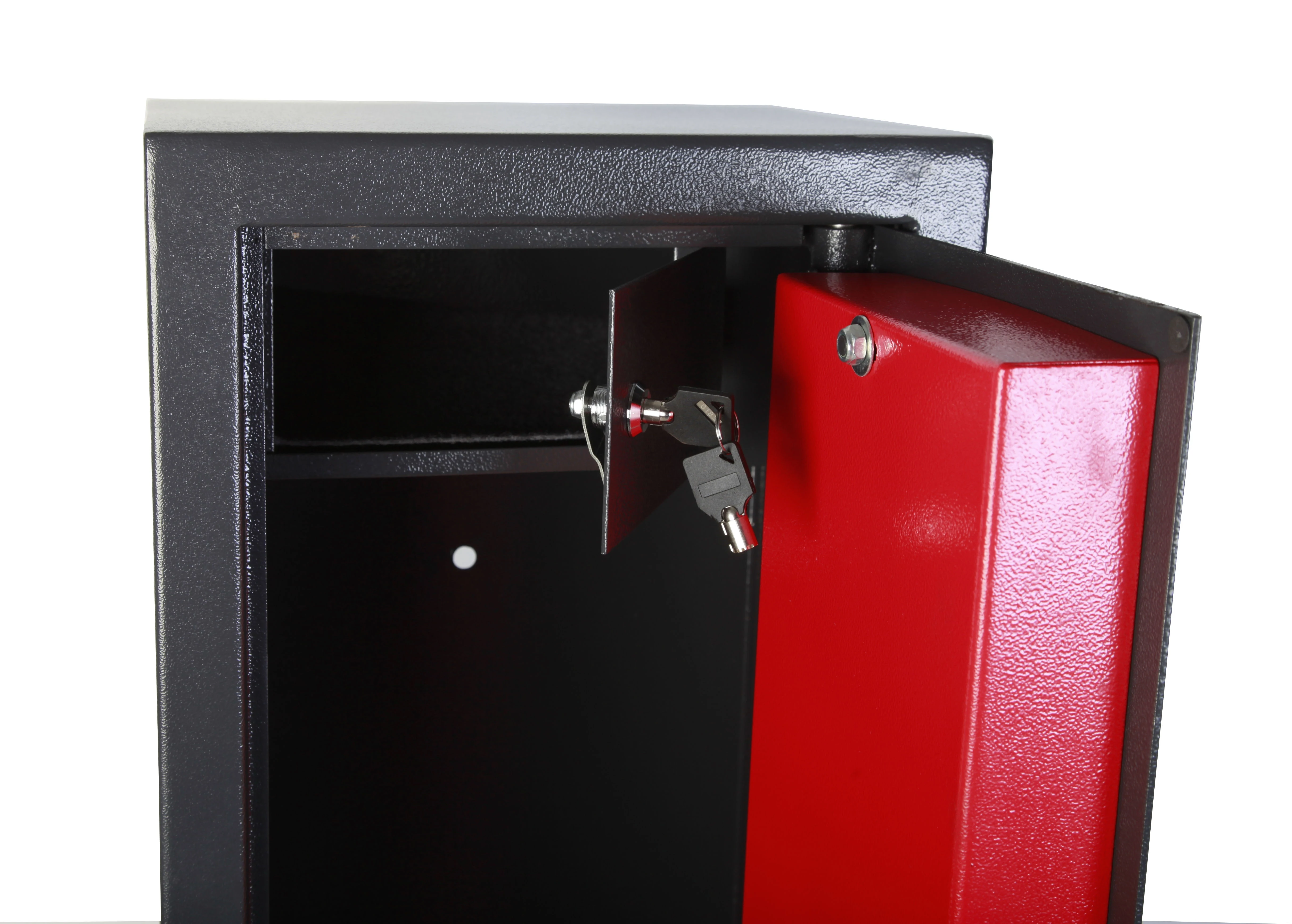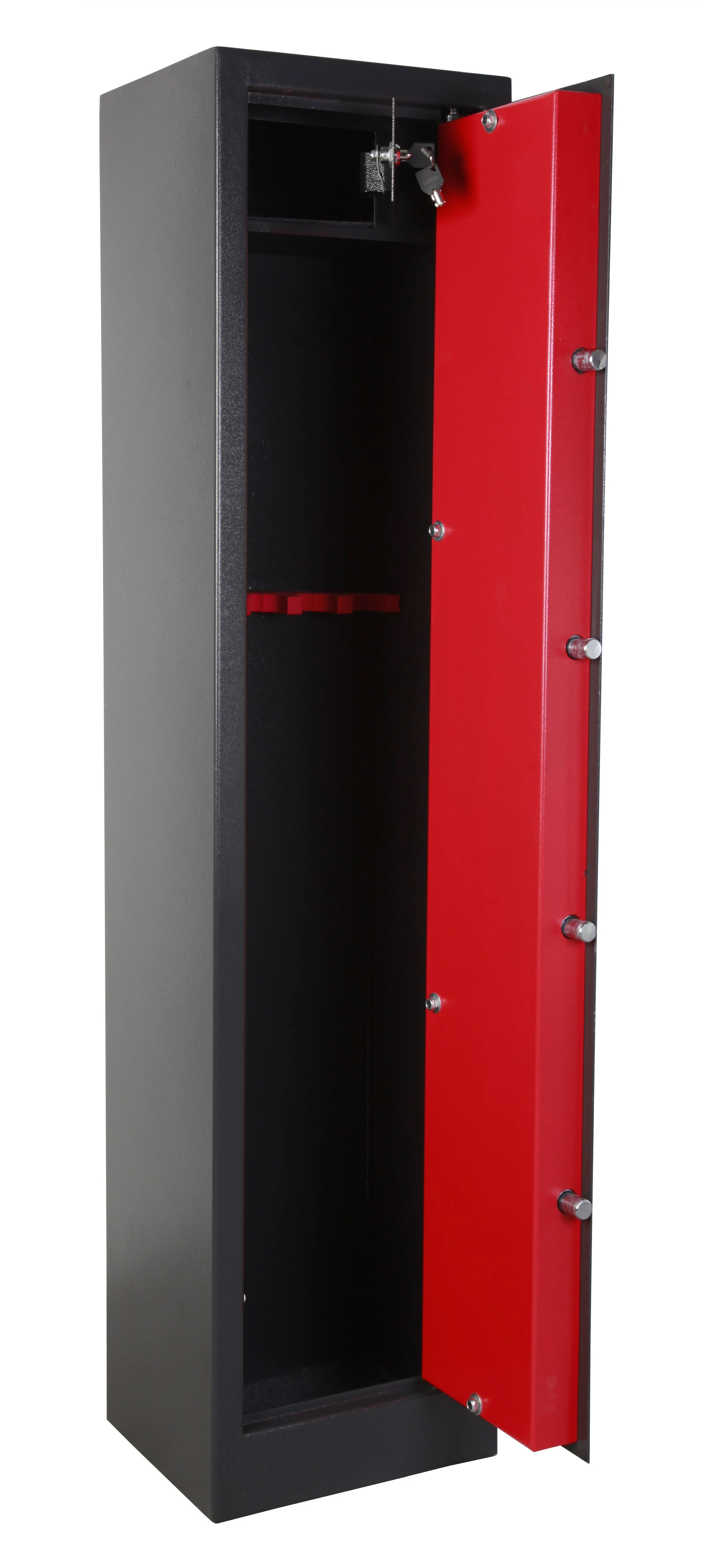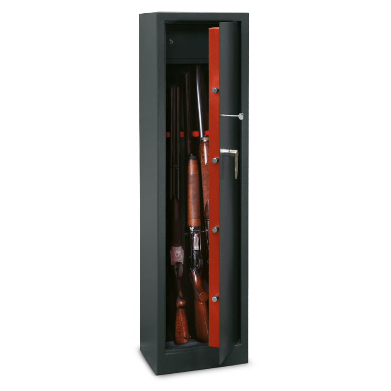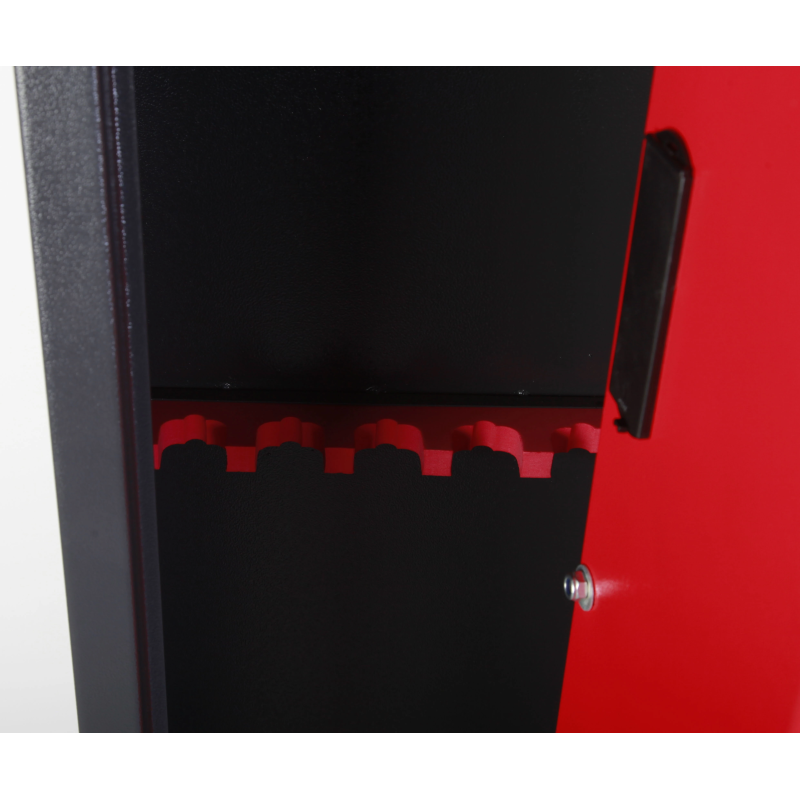 - Structure acier 2 mm, porte renforcée 55 mm et coffret munitions à clé