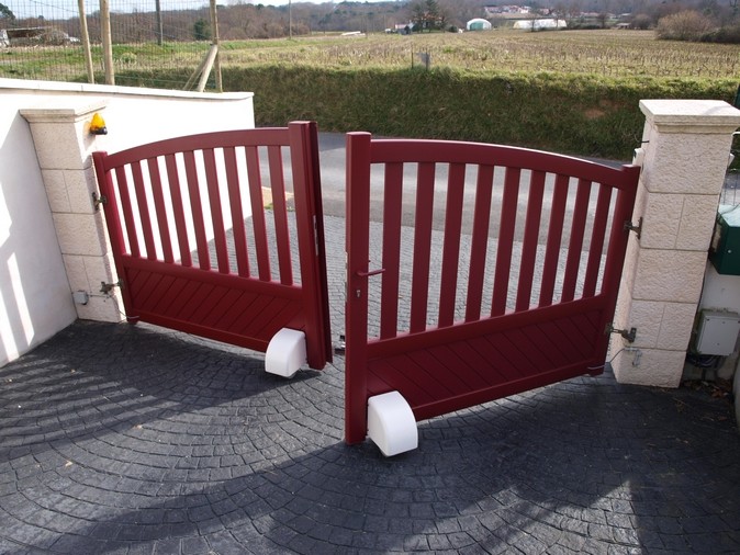 Installée à l’extrémité des vantaux — sans contrainte de pilier — elle assure un mouvement fluide et fiable, même sur portails lourds et larges.