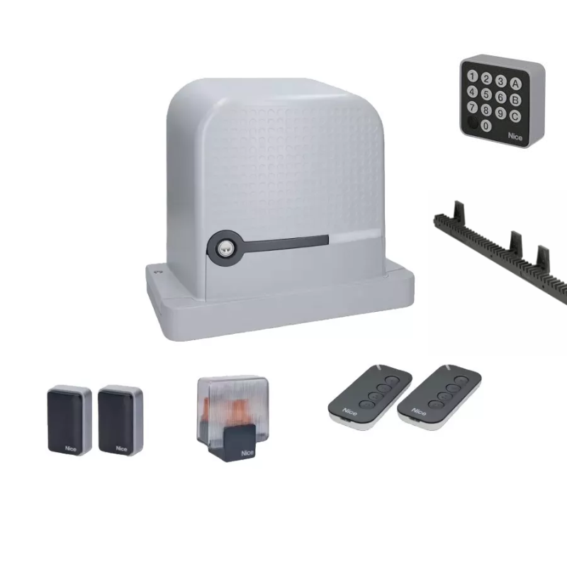 Motorisation portail coulissant NICE ROBUSKIT 400kg + crémaillères et clavier